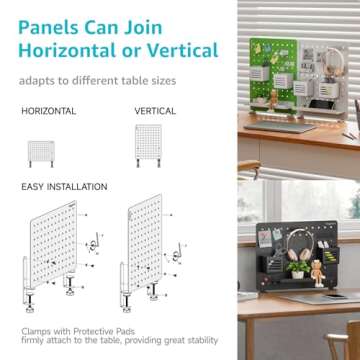 PEGZONE Clamp-on Desk Pegboard, Desk Accessories for Office Gaming Home, Magnetic Metal Peg Board with Accessories, Privacy Panel for Office, Pegboard Organizer