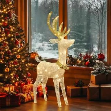 PEIDUO Christmas Reindeer Decorations, Outdoor Lighted Reindeer Yard Decorations with 70 Warm White Lights, 4 FT Deer Christmas Decor for Lawn Porch Garden Outside Xmas Holiday, Plug in