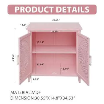 PEIHONGET Accent Storage Cabinet with 2 Doors, Sideboard Buffet Cabinet with Carved Door Handle,Modern Entryway Decorative Cabinet with Hollow Design for Living Room,Kitchen (Pink)