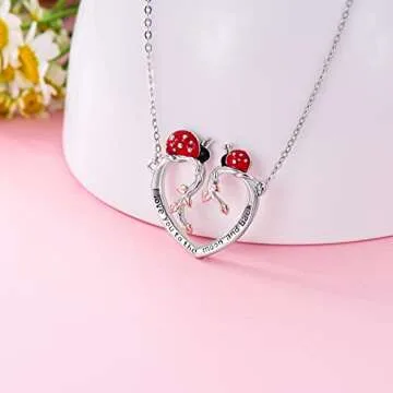 Show moreIntroducing the exquisite PEIMKO Ladybug Necklace, a stunning piece of jewelry that beautifully intertwines nature and sentiment. Featuring a charming tree of life pendant embellished with two elegant ladybugs gazing at each other, this necklace serves as a heartfelt symbol of love and connection. Thoughtfully engraved with the touching phrase, I love you to the moon and back, every detail is crafted with meticulous precision, making it a heartfelt reminder of cherished relationships.