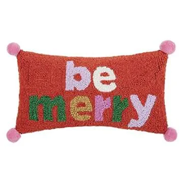Show more Transform your living space into a cozy and stylish haven with the Peking Handicraft Be Merry with Pom Pom Hool Pillow. This exquisite 16-inch decorative pillow combines quality craftsmanship with a whimsical design, featuring delightful pom poms that add a charming festive flair. Made from a blend of wool and poly velvet, this pillow is not only soft to the touch but also durable, making it the perfect accessory for your home decor. Whether you place it on your patio, in the living room, or on the porch, its vibrant appearance is sure to bring warmth and comfort wherever it is displayed.