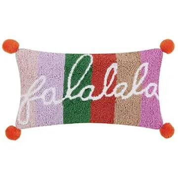 Peking Handicraft Falala with Pom Pom Hook Pillow, 16-inch Length, Wool, Poly Velvet, Christmas, Home Décor, Holiday Tradition
