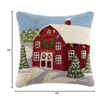 Peking Handicraft Winter Barn Hook Wool Throw Pillow, Multicolored