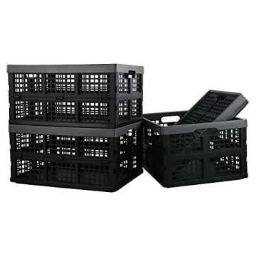 Pekky 34 Quart Collapsible and Stackable Milk Crates - 4 Packs for Smart Storage Solutions