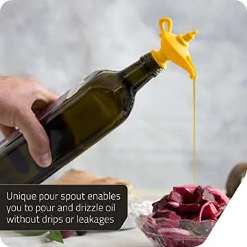 Peleg Design Oiladdin Oil Pourer and Stopper, Silicone Oil Pour Spout for Olive Oil, Aladdin Lamp Design Oil Dispenser Bottle Stopper, 8x9x4.5 cm, Yellow