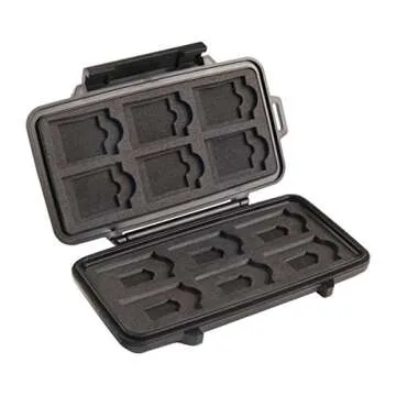 Show moreIntroducing the ultimate solution for storing your specialized memory cards - the Pelican Portable Electronic Device Cover. Designed with precision, this durable case is made to provide compact, yet optimal storage for up to 12 SD cards, ensuring you never run out of space. The Pelican brand is synonymous with quality and reliability, and this product truly reflects those values. This cover features a smooth-opening mechanism that outperforms other brands, making it an essential accessory for photographers, videographers, and anyone who relies on a multitude of memory cards.