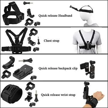 Show more Introducing the ultimate accessories kit designed specifically for the DJI Osmo Pocket 2 camera, this innovative solution is a must-have for action sports enthusiasts and photography lovers alike. With a quick release design, you can effortlessly switch between backpack clips, wrist straps, headbands, and chest strap mounts in just one second, eliminating the hassle of dealing with screws. This level of convenience ensures you can focus on capturing breathtaking moments without interruptions.