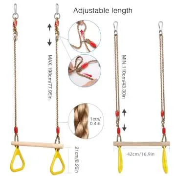 PELLOR Playground Children's Wooden Trapeze Swing Bar with Plastic Gym Rings Swing Set for Indoor & Outdoor Fun
