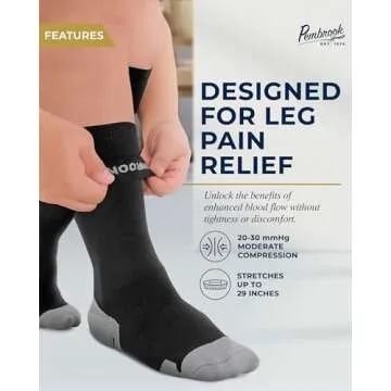 Pembrook Plus Size Compression Socks Wide Calf - Up to 6XL | Black Wide Calf Compression Socks Women Plus Size | Circulation Support Extra Wide Calf Compression Socks