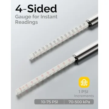 Discover the Precision of the Pencil Tire Pressure Gauge 2 Pack: Say goodbye to guesswork in tire pressure maintenance! Crafted with meticulous engineering, this dual-unit tire pressure gauge delivers accurate readings in PSI (10–70) and kPa (70–500), ensuring your tire pressure is always within optimal levels. The 4-sided high-contrast scale allows you to read your tire pressure easily from any angle, making it an efficient tool for both casual drivers and experienced technicians. Enjoy...