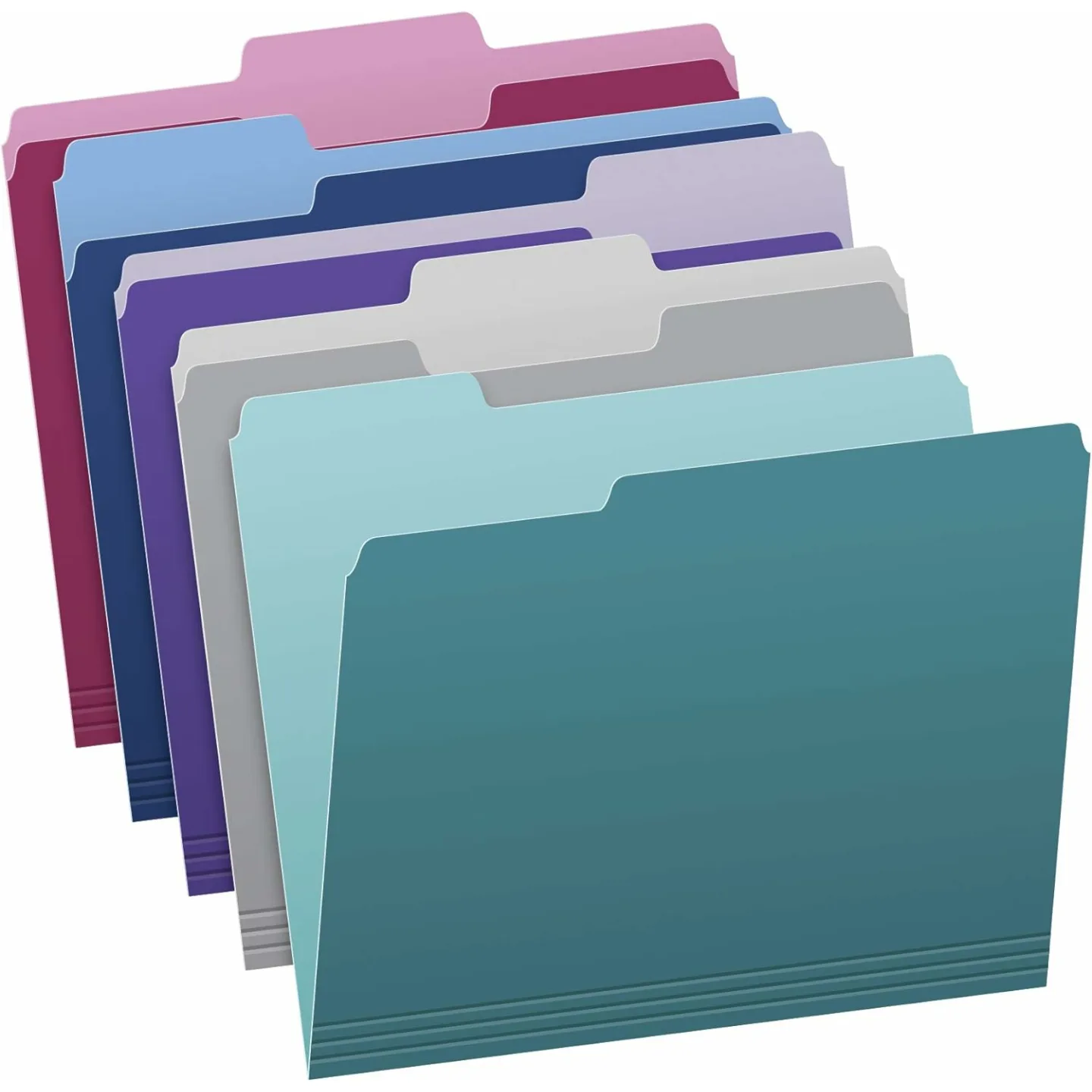 These file folders feature a lighter interior color that makes labeling and reading easier, and they come in assorted jewel tones to add visual appeal to your filing system.