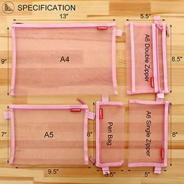 Pendancy Mesh Zipper Pouch 5pcs Lightweight Nylon File Folders Document Organizer Cosmetic Bags Accessories Storage for Travel and Office Supplies(Pink, A4 A5 A6)