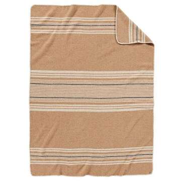Show moreIntroducing the Pendleton Eco-Wise Washable Wool Throw, a luxurious accessory that combines comfort, style, and sustainability. Crafted from 100% pure wool, this throw is not only irresistibly soft but also durable and eco-friendly, making it the perfect addition to your home décor. The charming Irving Stripe pattern in rich camel hues adds a touch of sophistication to any setting. Designed for versatility, this throw can transition from cozying up on the couch to being an elegant addition to your bedspread. Best of all, it is machine washable, ensuring that luxury remains hassle-free and practical.