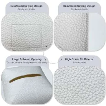 Show more Upgrade your home decor with the PENGLONG Tissue Box Cover, a stylish solution that blends functionality with elegance. Crafted with premium PU leather, this tissue box cover is designed to match any interior while providing superior support for various tissue types. With a minimalist design, it fits standard tissue box sizes of 5x5x5 inches and extends flexibility for hollow roll paper and solid roll paper.