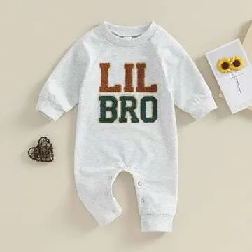 pengnight Newborn Baby Boys Girls Romper Long Sleeve Lil Bro Letter Print Solid Color Bodysuit Jumpsuit