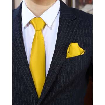 Show moreIntroducing the **PenSee Men\u2019s Banana Yellow Tie Set**, a statement piece designed for the modern gentleman who values both style and versatility. Made from **premium microfiber**, this tie not only touts an eye-catching banana yellow hue, but it also embodies a soft, luxurious texture that is pleasing to the touch. Perfectly suited for both formal and casual settings, its classic design ensures that you always look distinguished, whether attending weddings, business meetings, clubs, or parties. This set also includes a coordinating pocket square, seamlessly combining practicality with style in one elegant package.