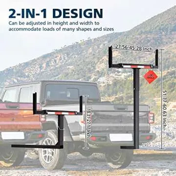 PENSUN Truck Bed Extender, 2 in 1 Design Foldable Pick Up Truck Bed Hitch Mount Extension Rack for Canoe Kayak Ladder Lumber, 800lbs Load Capacity, w/Reflective Tapes (Truck Bed Extender)
