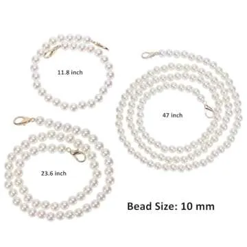 PENTA ANGEL Purse Chain Strap Replacement 3Pcs Imitation Pearl Beads Short Long Handle Shoulder Cross Body Bag Handbag Chains Accessories with Metal Buckles