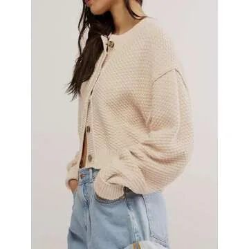 People Free Doop,Fall Sweaters,Cardigan Sweaters for Women,Button Front Lightweight Cropped Short Cardigan Beige