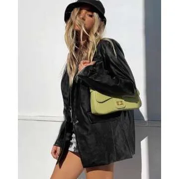 Pepochic Women's Oversized Faux Leather Blazer Jacket with Pockets