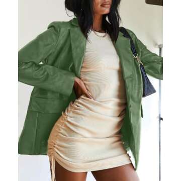 Pepochic Womens Oversized Leather Jacket Long Sleeve Faux Leather Blazer Lapel Button Down Leather Shacket Coat with Pockets