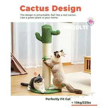 PEQULTI Cat Scratching Post Tall for Large Cats Cactus Scratcher for Indoor Cat with Toy Balls Spring Ball Catcher and Fully Wrapped Strong Sisal Rope, White Large