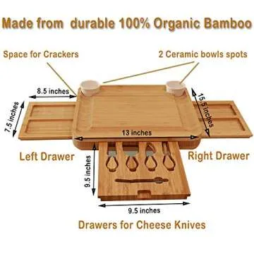 Peraco Bamboo Charcuterie Board Set and Accessories - Includes Large Cheese Board and Knife Set with Extra Utensils and Bowls - Perfect Serving Platter and Cutting Board - Includes free Ebook