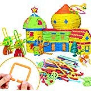 Peradix Kids Building Sticks Puzzle Toy Soft Building Blocks STEM Set Flexible Twistable Construction Theme DIY Activity Game Set- Construction and Educational Toy for Kids with Storage Bag (155pc)