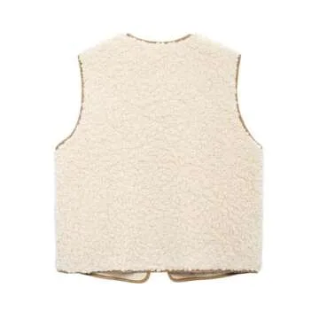 Perbai Women's Fuzzy Fleece Vest Crewneck Sleeveless Sherpa Jacket Tie Front Y2K Cardigan Vest Gilet with Pockets(Beige-M)