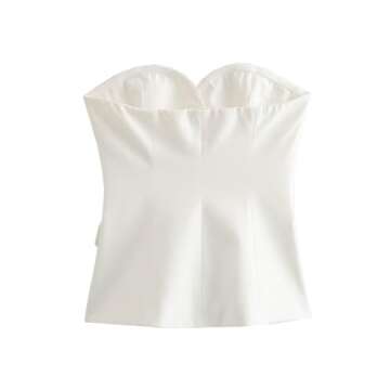 Chic Perbai Women’s Sleeveless Blazer Tube Top with Sweetheart Neck (White-S)