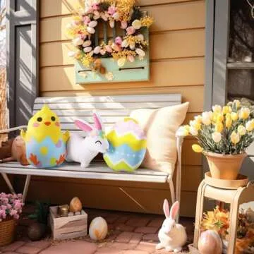 Measuring perfect sizes - the bunny throw pillow at approximately 14.9 x 14.1 inches, the egg-shaped about 7.8 x 9.4 inches, and the chick around 11 x 14.9 inches - they are just right for cuddling. Not too big and not too small, they are great to hug or sleep with, providing comfort and company throughout the festive period.