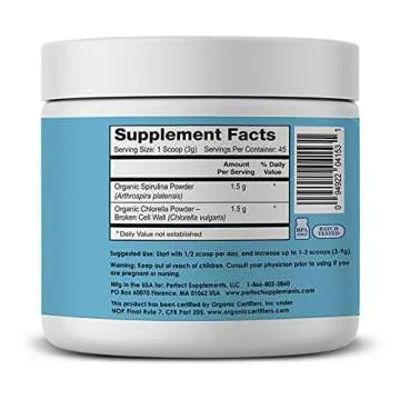 Perfect Supplements – Perfect Aquatic Greens Powder – 135 Grams – Organic Spirulina and Chlorella Supplement – Nutritious Superfood