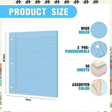 PerKoop 12 Pack 600 Sheets Lined Paper Bulk Wide Ruled 8 x 10.5 In, Loose Leaf Notebook Paper 3 Hole Punched Filler for Back School Classroom Supplies(Sweet Color)