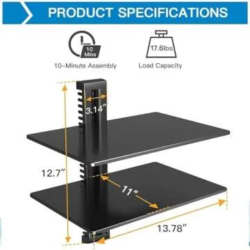 PERLESMITH Floating AV Shelf Double Wall Mount TV Shelf - Holds up to 17.6lbs - DVD DVR Component Shelf - Perfect for Xbox, Projector, WiFi Router, Game Console and Cable Box, PSDSK2