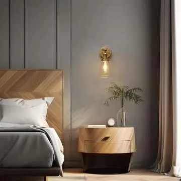 PERMO Industrial Wall Sconce Lighting Hardwired Single Brass Sconce with On Off Switch Funnel Flared Clear Glass Hand Blown Shade (Antique)