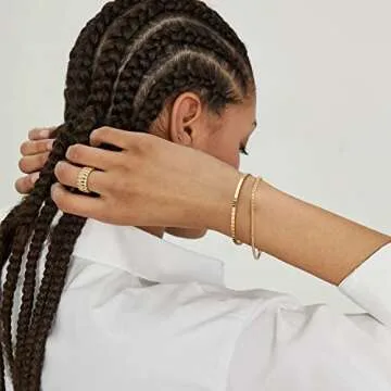 PERNNLA PEARL 18K Gold Cuff Bangle Bracelets for Women Statement Rectangular Stackable Bracelets Adjustable Dainty Love Thin Gold Bracelet