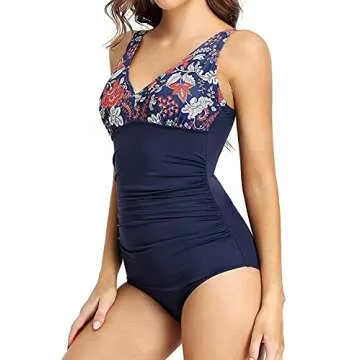 PERONA Women's Tummy Control Swimsuit One Piece Bathing Suit Vintage Printed Swimwear Butterfly
