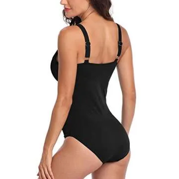 PERONA Women's Tummy Control Swimsuit One Piece Bathing Suit Vintage Printed Swimwear (US 6(Read The Size Chart in Our Image), Solid Black)