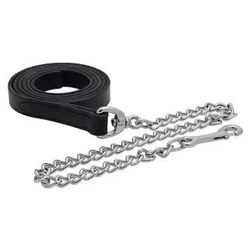 Perri's Leather Lead with 30-Inch Chain, Black/Silver with Chrome, 6-Feet 30-Inch