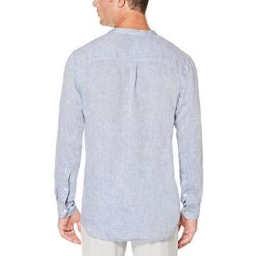 Perry Ellis Men's Long Sleeve 100% Linen Popover Shirt With Banded Collar, Solid Lightweight Fabric (Size Small-Xxl), Colony Blue, Small