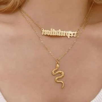 Personality Layered Silver Reputation Snake Necklace for Women,Gothic Punk Animal Neckalce Vintage Jewelry Gifts (A-Gold)