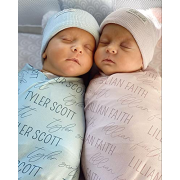 Personalized Baby Blanket - Custom Monogram Name Swaddle Receiving Blanket for Infants