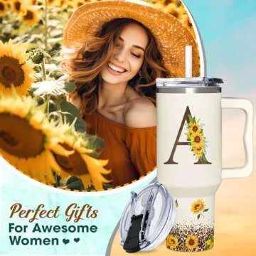 Show more Introducing the ultimate gift for the remarkable women in your life, the **Personalized Birthday Gifts For Women - Sunflowers Monogrammed Cup**, a beautifully crafted 40oz tumbler that combines elegance and functionality. Tailored perfectly for every occasion, this stainless steel tumbler is not just a drinkware but a heartfelt memento. With its spellbinding sunflower design, this monogrammed cup offers personalized charm, making it a standout gift for mothers, wives, friends, and colleagues. Each sip from this tumbler captures the warmth of your sentiments, all while ensuring that your beverages stay at the ideal temperature through its impressive thermal insulation technology.