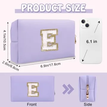 Show moreIntroducing the Personalized Chenille Letter Preppy Makeup Bag! This adorable small purple cosmetic organizer is the perfect blend of style and functionality. With dimensions of 6.9x2.6x4.1 inches, it’s compact enough to fit in your purse yet spacious enough to hold all your essential makeup and toiletry items. Crafted from high-quality PU leather, this waterproof and fade-resistant pouch is designed to withstand the rigors of daily use. The standout feature is its exquisite gold glitter chenille patch letter, which is expertly sewn onto the bag, ensuring durability and a touch of personality.