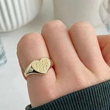 Personalized FUCK OFF Heart Band Ring Inspirational Middle Finger Tail Ring Titanium Steel Hypoallergenic Stacking Cool Dainty Fashion BFF Birthday Gifts for Women- size 7