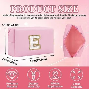 What sets this makeup bag apart from similar products is its unique personalization feature. While many cosmetic bags lack individuality, our bag allows you to express your style through initials. Additionally, the quality of PU leather combined with a waterproof and easy-to-clean design enhances its practicality over competitors. Other bags may not offer the same spaciousness or ease of access, making our design a superior choice for both everyday and travel needs.