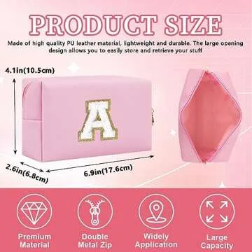 Show moreIntroducing the Personalized Initial Letter Patch Makeup Bag, a perfect blend of style and functionality that is designed to elevate your everyday essentials. Crafted from premium PU leather, this chic cosmetic bag measures 7in x 4.3in x 2.3in and is lightweight yet durable, making it an ideal companion for travel or daily use. Its unique initial letter patch feature allows you to personalize your bag to reflect your identity or express a special meaning, ensuring that you carry a touch of individuality wherever you go.