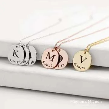 Show more Create a sentimental bond with our stunning Personalized Initial Necklace, the perfect keepsake for anyone you cherish. This exquisite piece features an initial pendant and a birthday date disc, measuring approximately 0.7 inches in diameter (18mm), coupled with a stylish chain length of 17.5 inches (44.5mm). Available in Gold Plated, Silver Plated, and Rose Gold Plated, each necklace is crafted from tarnish-resistant stainless steel, ensuring it stands the test of time while maintaining its beautiful shine.
