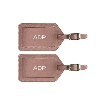 Show moreDiscover elegance on your travels with the Personalized Monogrammed Blush Leather Luggage Tags - 2 Pack. These exquisite luggage tags are not just functional but add a touch of personal luxury to your belongings. Crafted from high-quality leather, each tag features a unique foil stamp that can be customized with your initials, allowing for a sophisticated declaration of your identity. Measuring at a perfect size of 2.75" x 4.5" (excluding the buckle), these tags are easy to spot on the baggage carousel, ensuring that your luggage stands out with style.