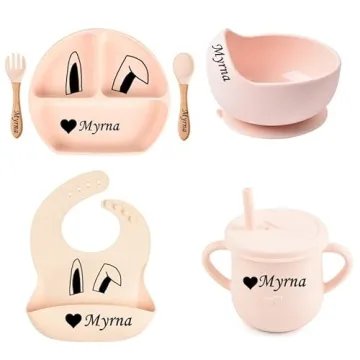 Introducing the **Personalized Name Food Grade 6pcs Baby Feeding Set**, expertly crafted to support your child’s self-feeding journey! Designed with love and care, this complete feeding set showcases safety as its top priority, offering parents peace of mind as their little ones explore solid foods. Made from **100% Food Grade silicone**, this set is certified through rigorous third-party testing, ensuring it is free from BPA, Phthalates, Lead, and any harmful chemicals that could pose a risk to your child....